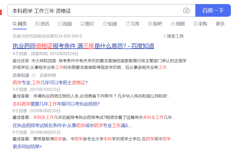 3、小丽是药学专业的一名本科生,现已从事药学专业的工作,目前她想考取一个资格证,但是报名条件中要求其工作满三年。那么,小丽想考取的是什么证。(请回答并附截图证明。)