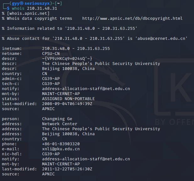 5、210.31.48.31,该IP地址是属于哪个单位的(附截图)