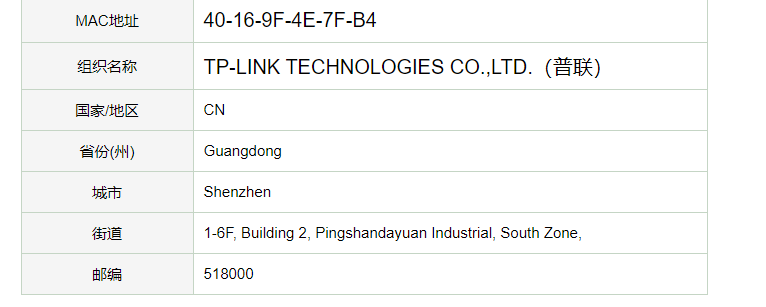 6、在一个案件中,获取了犯罪嫌疑人的一个MAC地址:40-16-9F-4E-7F-B4,请查询该MAC地址对应的厂商是(附截图)