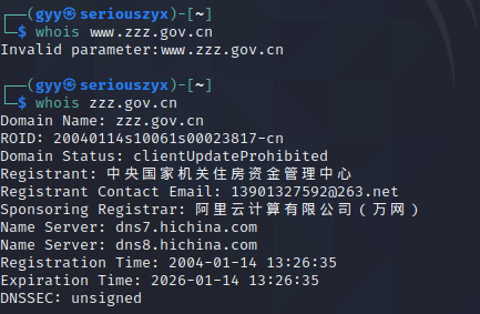 7、获取www.zzz.gov.cn域名注册时,注册人的邮箱及注册时间(附截图)