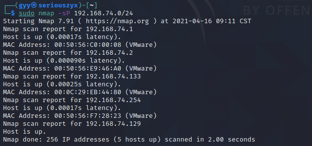 8、请查询本机的IP地址和子网掩码,并扫描本网段内的所有存活主机(附搜索截图)可以使用nmap等扫描工具实现