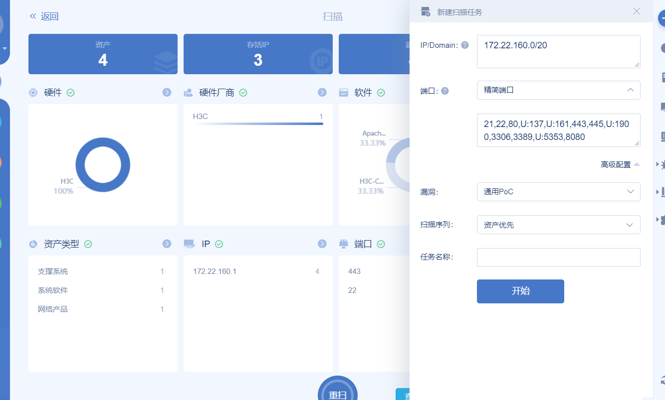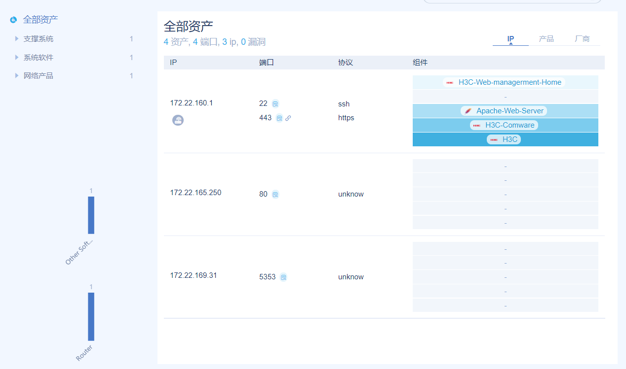 自动探测当前网络空间存活的IP及解析域名到IP,轻量且快速的分析出端口对应的协议、Mac地址、证书、应用产品、厂商等信息。