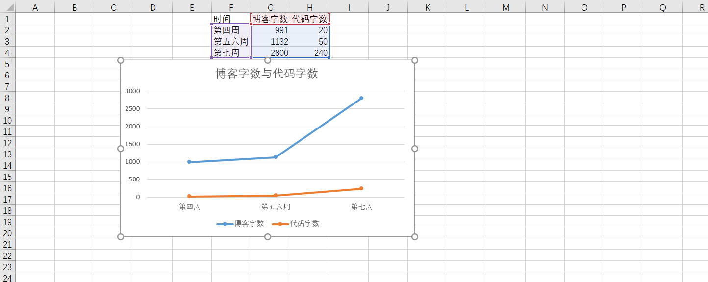 3.2 累积代码行和博客字数##