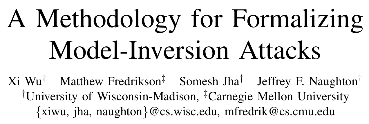 最近,发现了更多有效 MI 攻击的实例,进一步激发了对此类攻击的兴趣。例如,[7]考虑了对用于分类图像的模型的白盒 MI 攻击。他们证明,通过利用此类模型提供的额外置信信息,可以显着提高 MI 攻击的有效性和效率。有趣的是,我们注意到这些攻击让人想起在反转高度压缩图像特征的背景下讨论的隐私攻击,这在之前已经探讨过[8] - [9] [10]. 然而,我们相信,如果我们要针对所有这些攻击制定对策,甚至对它们构成的危险做出准确解释,我们将需要超越基于示例的定义,需要一种方法来捕捉这种现象。我们认为这篇论文只是第一步,还有很多工作要做。