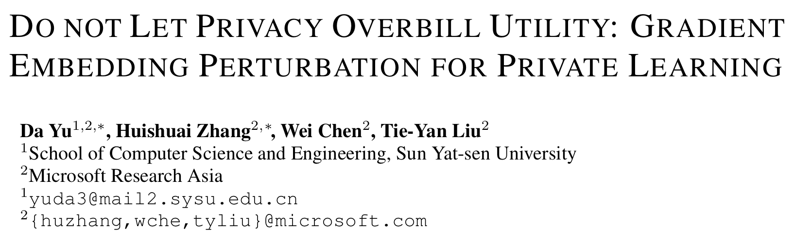 DO NOT LET PRIVACY OVERBILL U TILITY: G RADIENT E MBEDDING P ERTURBATION FOR P RIVATE L EARNING