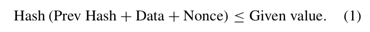 一致性算法是B-RAN中的一个关键组件。作为一个可公开访问的网络,B-RAN需要一个适当的协商一致机制来保护安全。比特币[7]中提出的工作证明(PoW)是一种选择,加密货币的广泛使用证明了它的安全性。在PoW格式中,每个有效块都包含一个nonce,它是一个回答特定数值难题的随机数。基于散列的PoW是为了找到合适的nonce,以使生成的块的散列值满足要求.