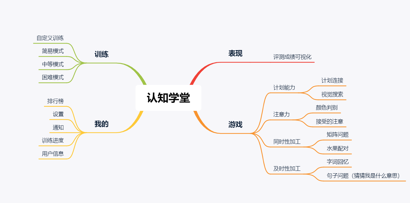 训练页面游戏顺序:1.颜色判别 2.计划连接 3.句子问题 4.视觉搜索 5.矩阵问题 6.字词回忆 7.水果配对 8.接受的注意