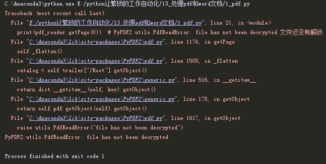 print(pdf_reader.getPage(0)) # PyPDF2.utils.PdfReadError: file has not been decrypted 文件还没有解锁