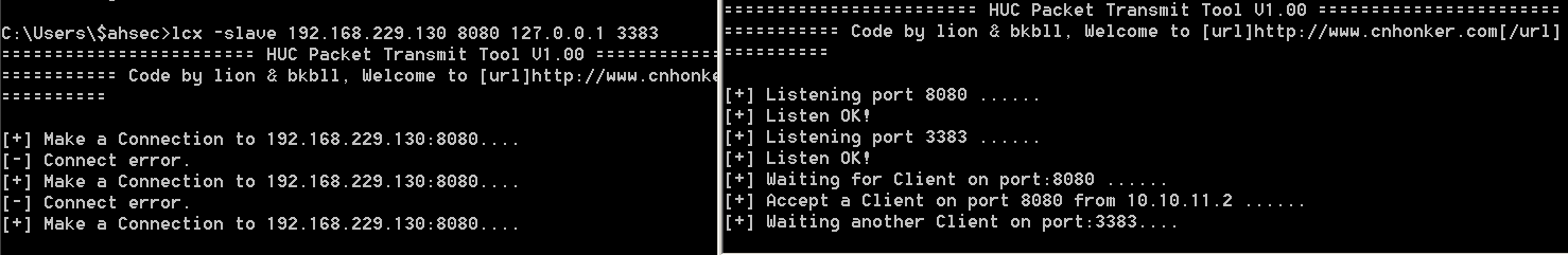 lcx -slave192.168.1.2 8080 127.0.0.1 3383