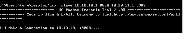 lcx -slave <VPS-ip> <vps-listen-port> <TransmitHost> <TransmitPort>