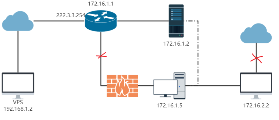 lcx -slave 172.16.1.2 8080 172.16.2.2 3389