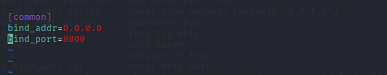服务器【linux】端,IP:192.168.229.129在frps.ini 中编写: