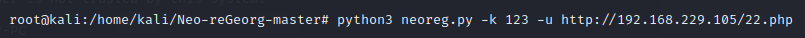 1.python3 neoreg.py generate -k <password> #设置密码并生成隧道文件,运行后会生成一个neoreg_server目录,里面包含了各种语言类型的隧道文件,然后把文件丢在目标web目录下