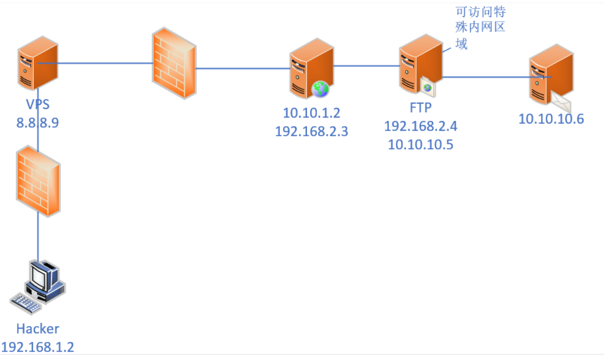 需求:Hacker能通过代理访问⽬标内⽹区域的机器。
