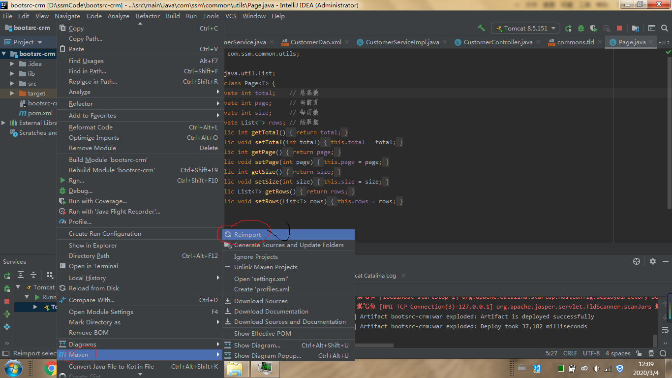 今天遇到了个小问题,服务器启动时提示:Error:(3, 28) java: 程序包com.ssm.common.utils不存在,但是包是存在的,类页存在。最后百度了一下解决了问题。重写导入依赖