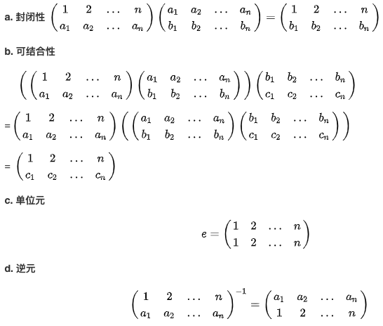 (3)若群\(G\)运算为乘法,则\(a^n=aa....a(n个)\)