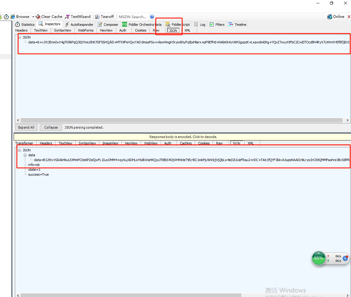 3、下图就是抓包工具抓取的加密内容,是一串字母,被框起来的两串字母就可以再上方的解密工具中进行解密,切记解密的内容前面的“data=”不要填到解密输入框中,不然无法解密。