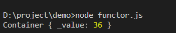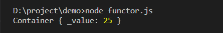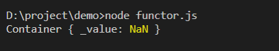 1 const newFunctor = Containers.of(undefined) 2 .map((x) => x + 2) 3 .map((x) => x * x); 4 5 console.log(newFunctor);
