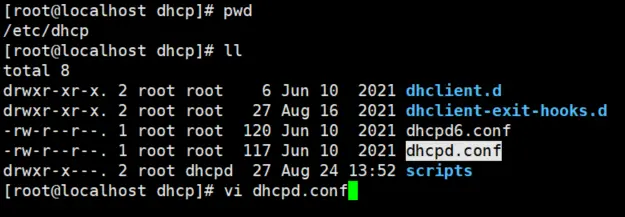 配置文件位于 /etc/dhcp 目录下 的 dhcpd.conf