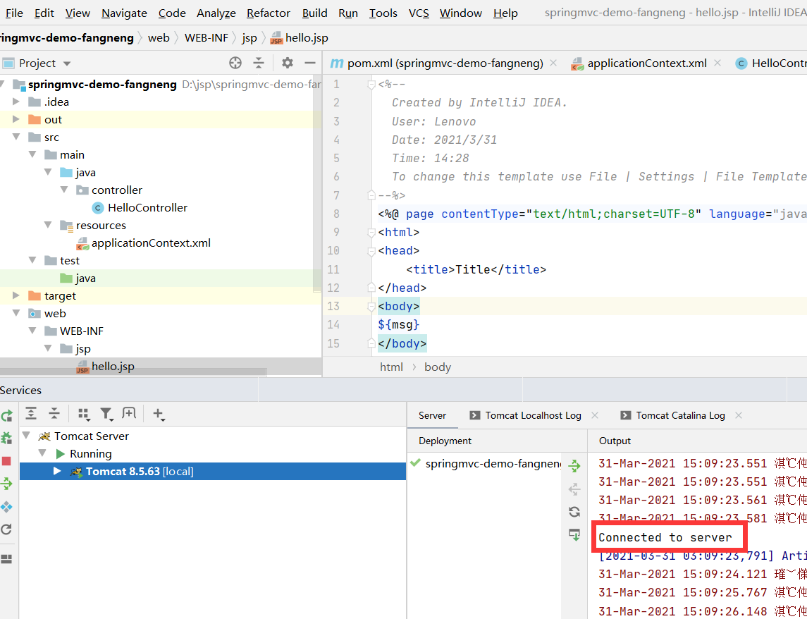 model.addAttribute("msg","HELLO MY FIRST SPRING MVC PROJECT");