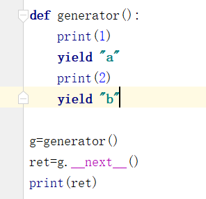 #生成器函数:执行之后会得到一个生成器作为返回值