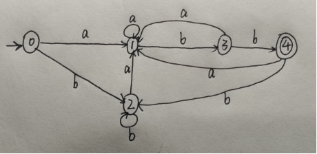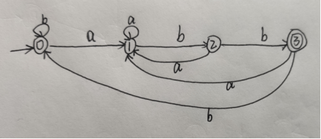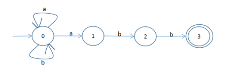 - 设有 NFA M=( {0,1,2,3}, {a,b},f,0,{3} ),其中 f(0,a)={0,1} f(0,b)={0} f(1,b)={2} f(2,b)={3} 画出状态转换矩阵,状态转换图,并说明该NFA识别的是什么样的语言。