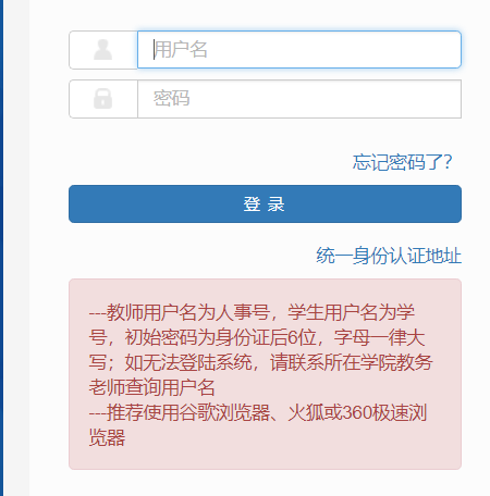 3.在登陆时,使用相同的账号和密码,在两种网页地却是不同的结果。使用教学综合服务平台登录无法成功登陆,但是点击统一身份认证却可以成功登陆,不符合用户控制权。希望能够修复这个问题。