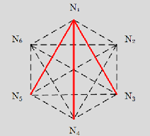从任意一点(此处以N1为示范)可以引5条线,由鸽巢(抽屉)原理可知,至少有3条边会同色假设为红色(蓝色类似,如图一),考虑此三边的终点(N3/N4/N5)的着色情况,将此三点中的任意两点连线着红色,即可构成一个红色的K3,若此三点都着蓝色,则可构成一个蓝色K3(如图二),得证!