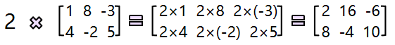 矩阵的数乘是指一个数乘以一个矩阵,只要把这个数乘到每一个(i,j)元上。