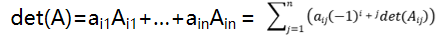 一个n×n矩阵的行列式等于其任意行(或列)的元素与对应的代数余子式乘积之和,即: