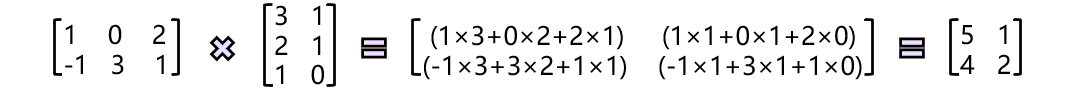 两个矩阵乘法仅当第一个矩阵A的列数和第二个矩阵B的行数相等时才能定义(做乘法)。