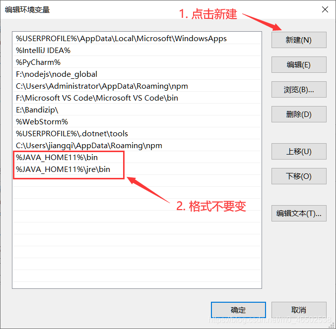 3. 可在用户变量下新建,也可以在系统变量下新建,然后点击确定