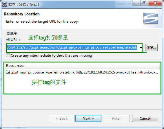 branches和tags本质没有差别,都是通过svn copy方式建立的,差异在于通常branches中的内容是须要继续改动或开发的,tags中的内容是存放不再改动的,这一般通过权限设置来解决,tags通常仅仅给管理员开发写权限。我们的项目开发到一个稳定版本号都须要打个tag。进行总结与备份。