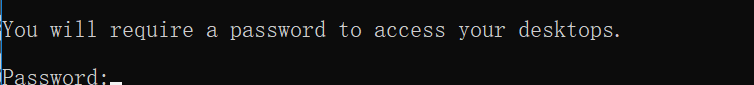 首次启动会要求设置密码(不能超过8位,我第一次输入了9位,然后它就只取了我输入的前8位作为密码),用来在客户端访问时使用,后面可以使用vncpasswd 修改。