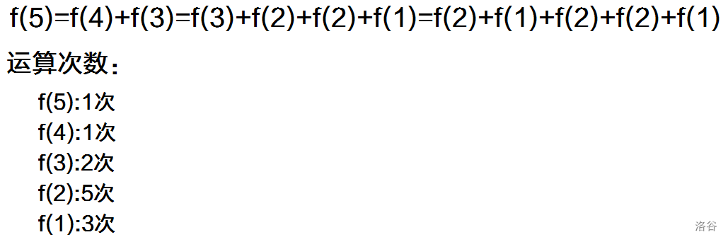 用一个数组储存\(f(n)\)的值,遇到则输出,不然赋值,只需5次,复杂度\(O(n)\)。