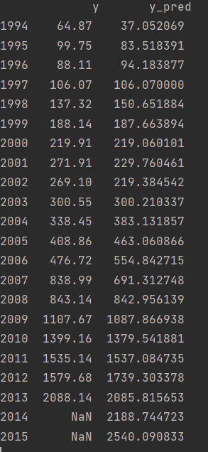 print('真实值与预测值分别为:\n',data[['y','y_pred']])