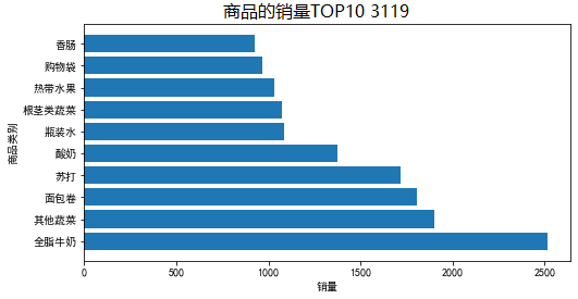 plt.title('商品的销量TOP10 3119') # 设置标题