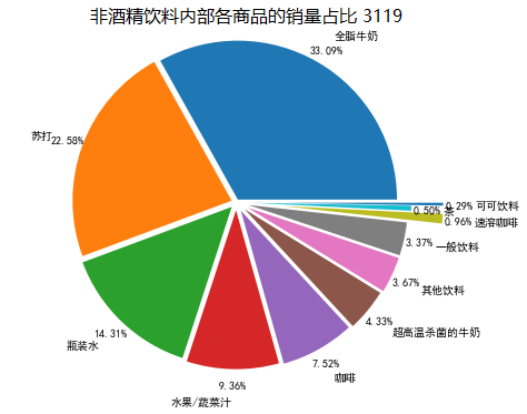 plt.title("非酒精饮料内部各商品的销量占比 3119") # 设置标题