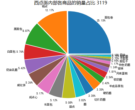 plt.title("西点类内部各商品的销量占比 3119") # 设置标题