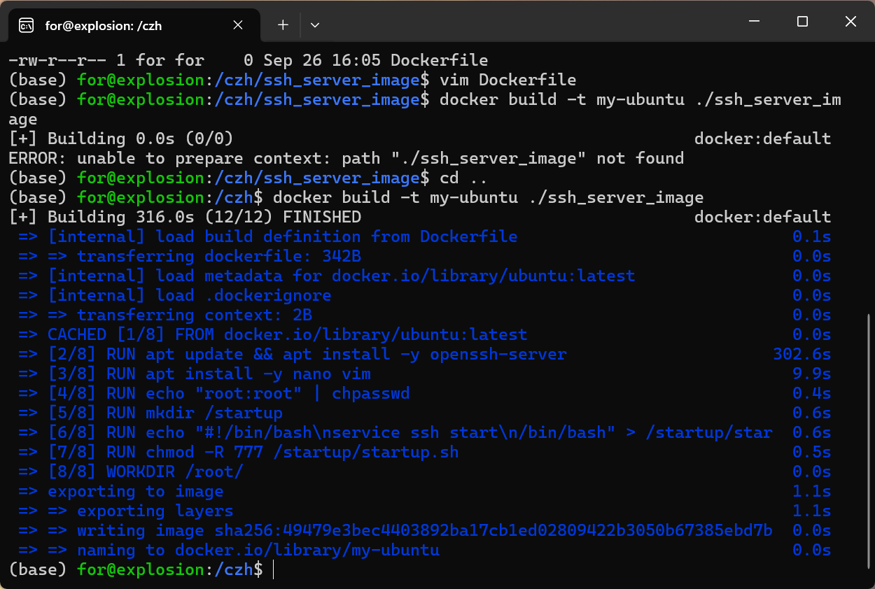 2.在ssh_server_image文件夹中创建Dockerfile文件,并输入一下配置