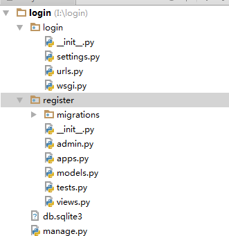 I:\login>python manage.py startapp in #创建register应用