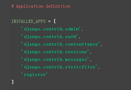 先配置login/setting.py文件,把register应用添加到项目中