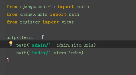 打开/register/views.py文件,创建index函数