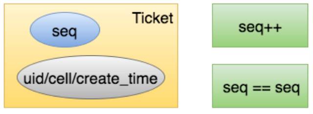 图上面有一个 seq,可能是我们这边比较独特的设计,你要实现可踢除,就像前图更多是对比两个 ticket 是不是对等,ticket 比较大是一个串,放在一个存储里面,空间挺大,并且不停地变,我们想把它改造成 seq,一个四字节的 int,通过 seq 达到 ticket 踢除的目的。