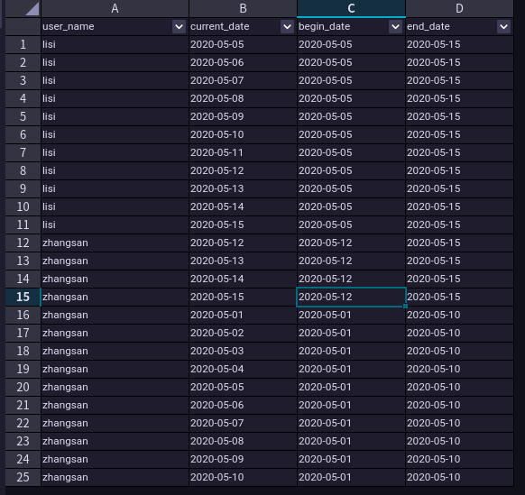 | zhangsan | 2020-05-10 | 2020-05-01 | 2020-05-10 |