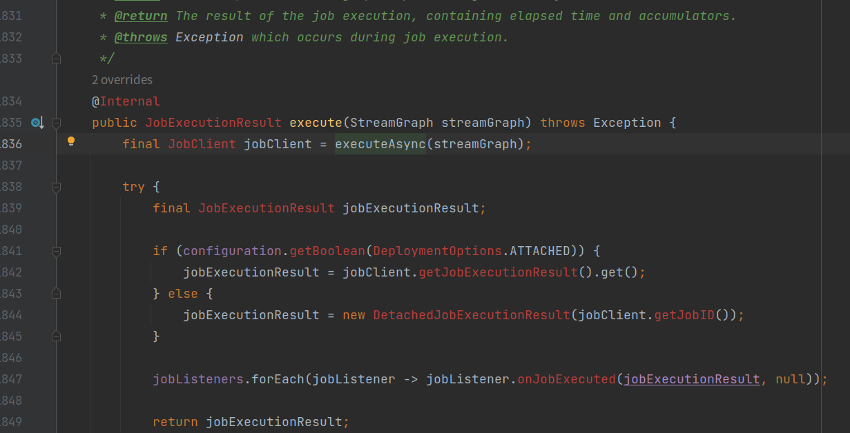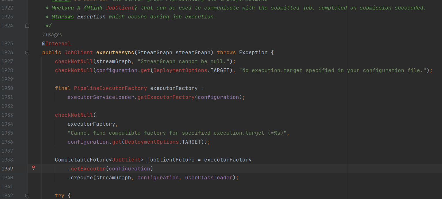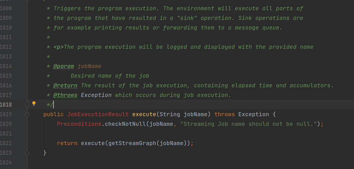 //所有的Stream任务都最终调用 StreamExecutionEnvironment.execute() 方法