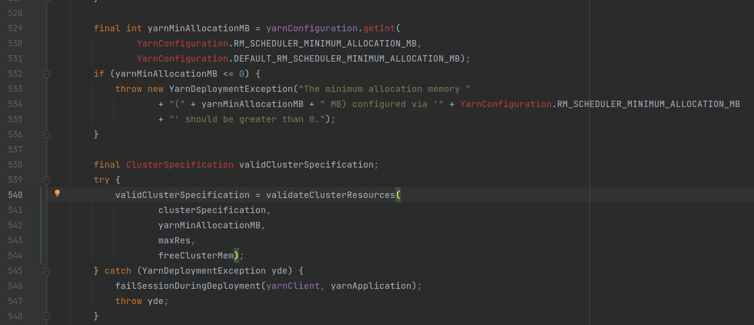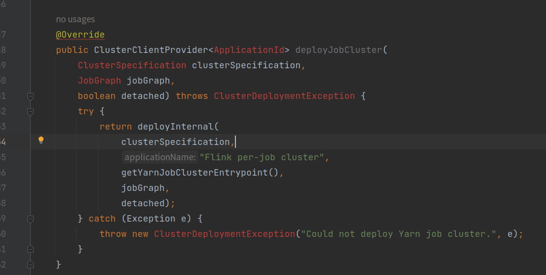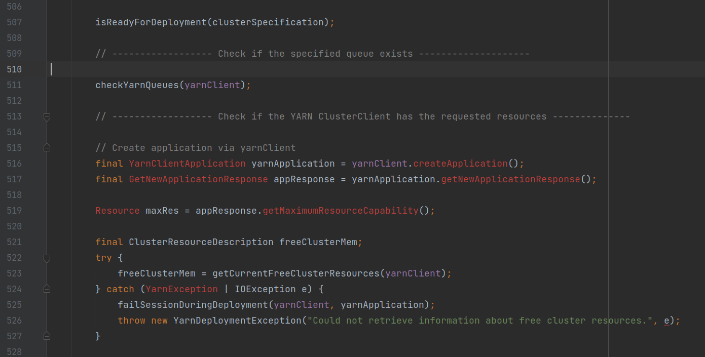 - 通过Yarn任务上下文实例,调用YarnClusterDescriptor.deployJobCluster()方法,部署Yarn任务;