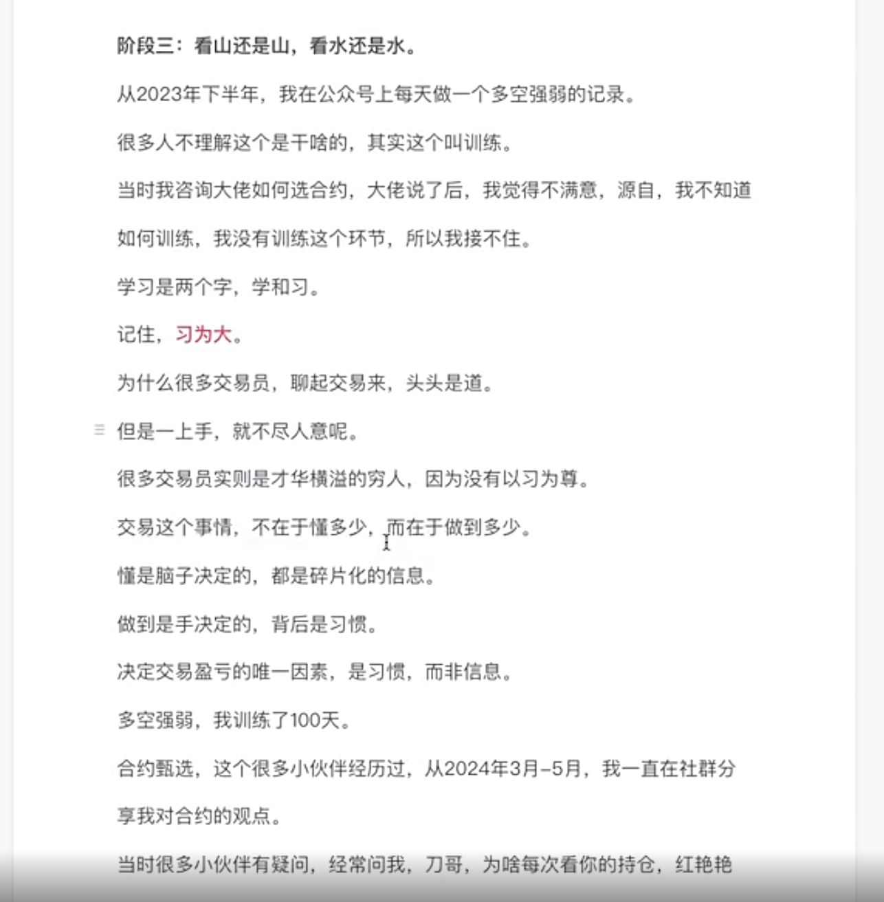 2、春节期间聚焦你挑选的这个几个合约,不要太多,太多了聚焦不了,结合这段时间所学,多复盘,复盘什么呢?拆解他过往的拐点形态和细节。