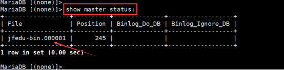 master_log_file="jfedu-bin.000005", # 指定要连接主库的最新的二进制文件,主库二进制文件通过 show master status; 命令查询。